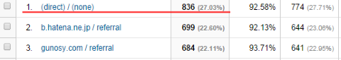 その後、色々とアクセス解析を見ていて、ふと気になったのがノーリファラー『(direct) / (none)』の急増。