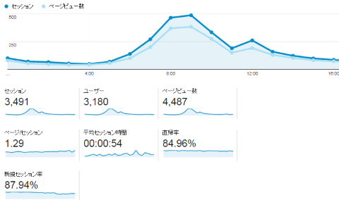 その結果は、このブログをご覧頂いている方ならご存知の通り、僕の予想を大きく越えて「Twitter拡散 ⇒ はてブスパイラル ⇒ Gunosy砲」という黄金パターンにハマり、最終的に1日で4,487PV(その内、該当の記事が3,428PV)を獲得するに至った。