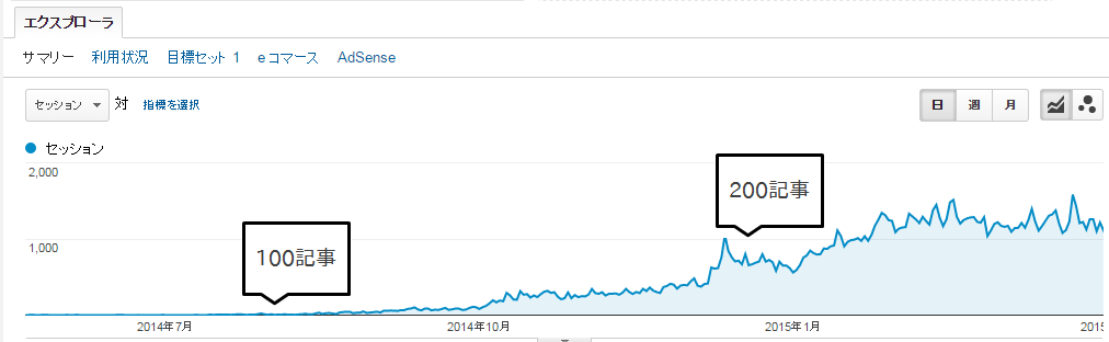 ちなみに、直近は1,000~1,500セッション(平均1,250セッション)くらいで推移しています。
