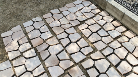 後はタイルの隙間に小さな石を流し込めば完成です!