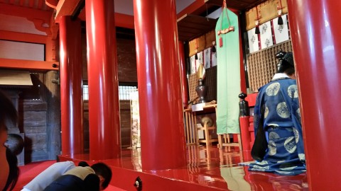 と、思ったのもつかの間、拝殿で祝詞をあげる段には祝詞をあげる様子を、興味津々で眺めていました。