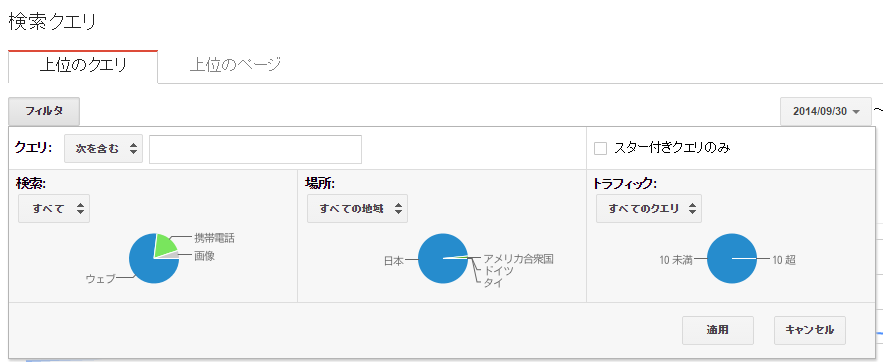 フィルターにキーワードを設定することで、特定のワードを含む(あるいは含まない)クエリだけを集計する事が可能です。