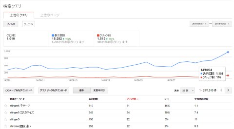 Googleウェブマスターツールの場合、主に「検索クエリ」の項から