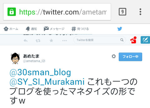 - ポイントはPC版のTwitterを表示するとこでした。