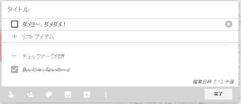 メモにフォーカスを当てると左上にチェックマークが出現しますので、これをクリックすると、