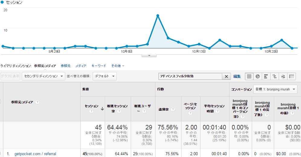例えばGoogleアナリティクスで、ひと月の流入を調べてみると、、、45?