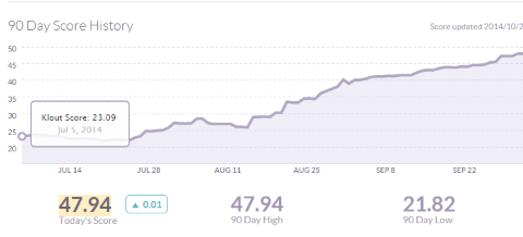 タイトルの通りですが、ここ最近、Kloutスコア50以上を目指して色々と取り組んでいる最中です。