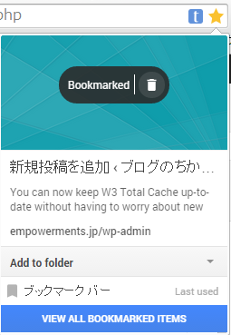ちなみにブックマーク自体は今まで通り 検索窓の星マーク から登録できますが、登録時に 保存先の指定やタイトル・説明文・URLなどを編集できるポップアップウィンドウが開くようになります。