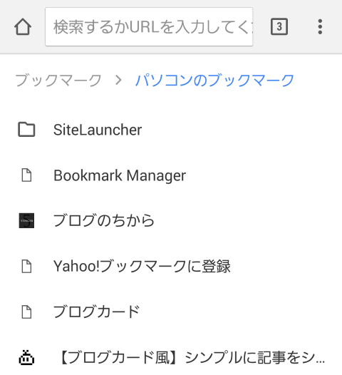 例えば、Android版Chromeのブックマーク画面の場合は下の画像のような感じですね。