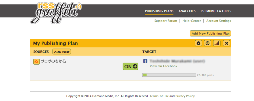 2. Facebookの個人アカウントは、「RSS Graffiti」を使って連携。