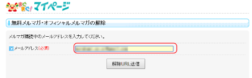 2. 表示されたマイページの「無料メルマガ・オフィシャルメルマガの解除」の項目にGmailのメアドを入力し、「解除URL送信」ボタンをクリックします。